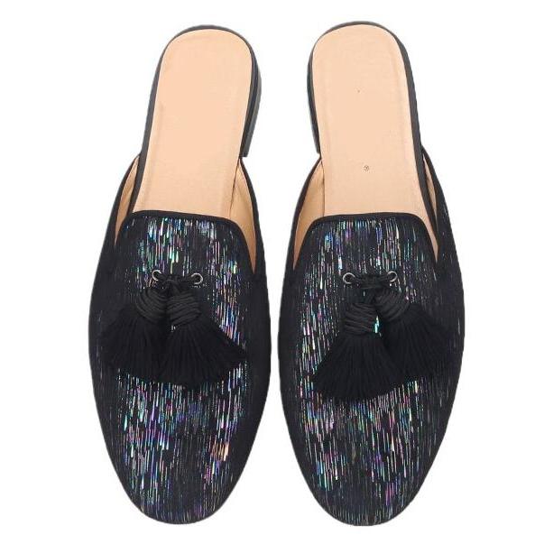 Handcrafted Multicolor Stripes Velvet Mules Loafer